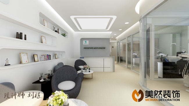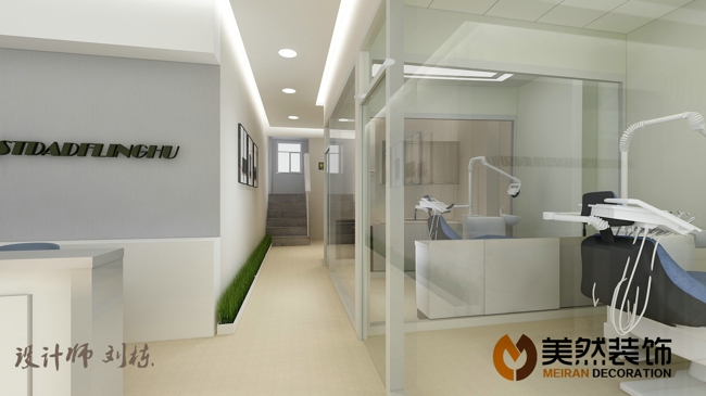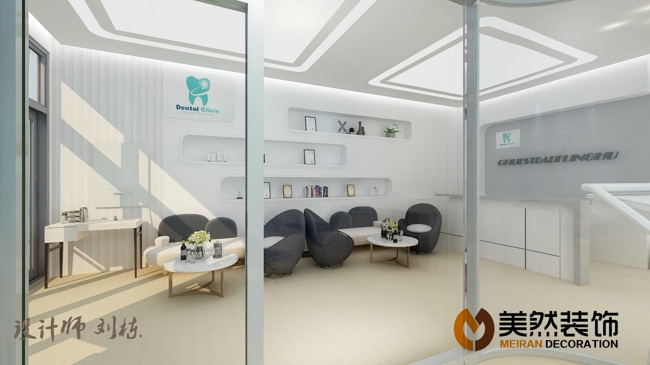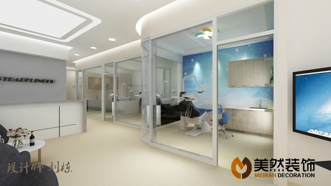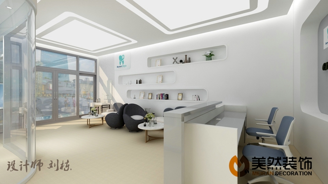此牙科診所位于涿州錦繡范陽底商,建筑面積230平米,共分候診區(qū)、兒童診室、VIP診室,普通診室,種植室、消毒間,牙模操作間等,配置比較齊全,檔次較高,由涿州美然裝飾客服部經(jīng)理劉棟親自操刀設(shè)計(jì)。